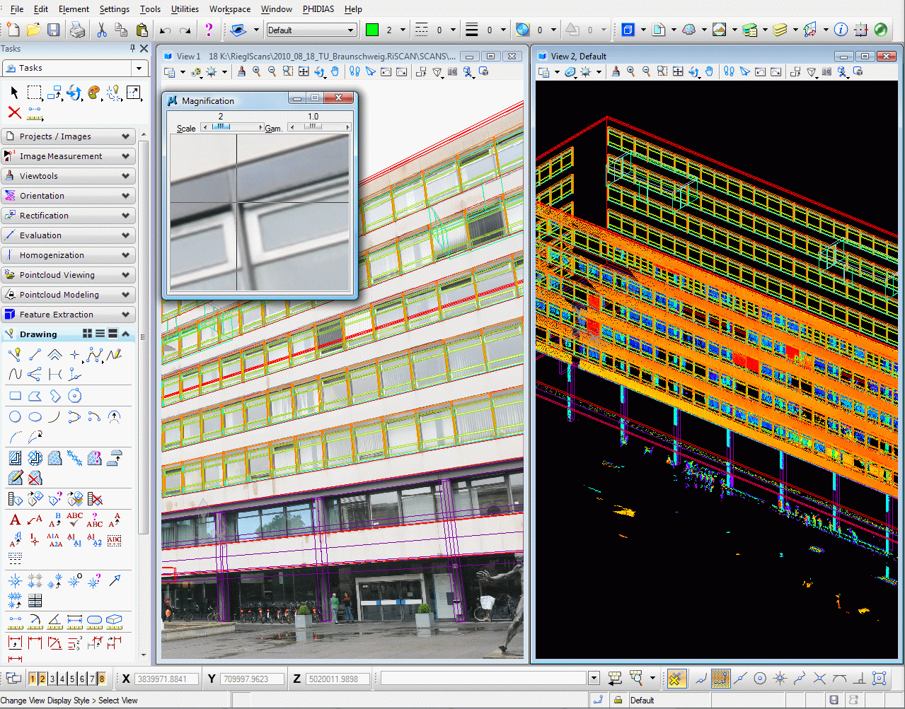 Die Auswertung der Daten mit der Software PHIDIAS und MicroStation wurde aufgezeichnet. Einige Videos der Auswerteschritte können Sie hier herunterladen.